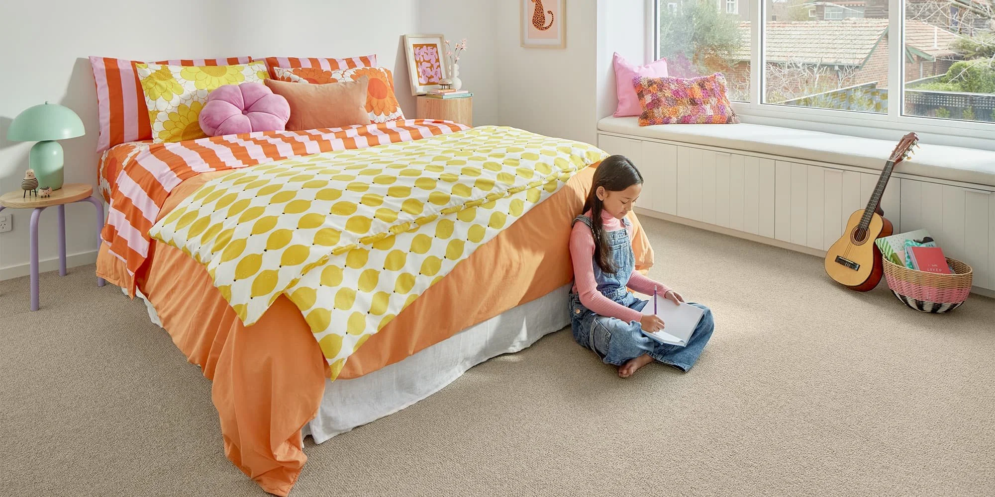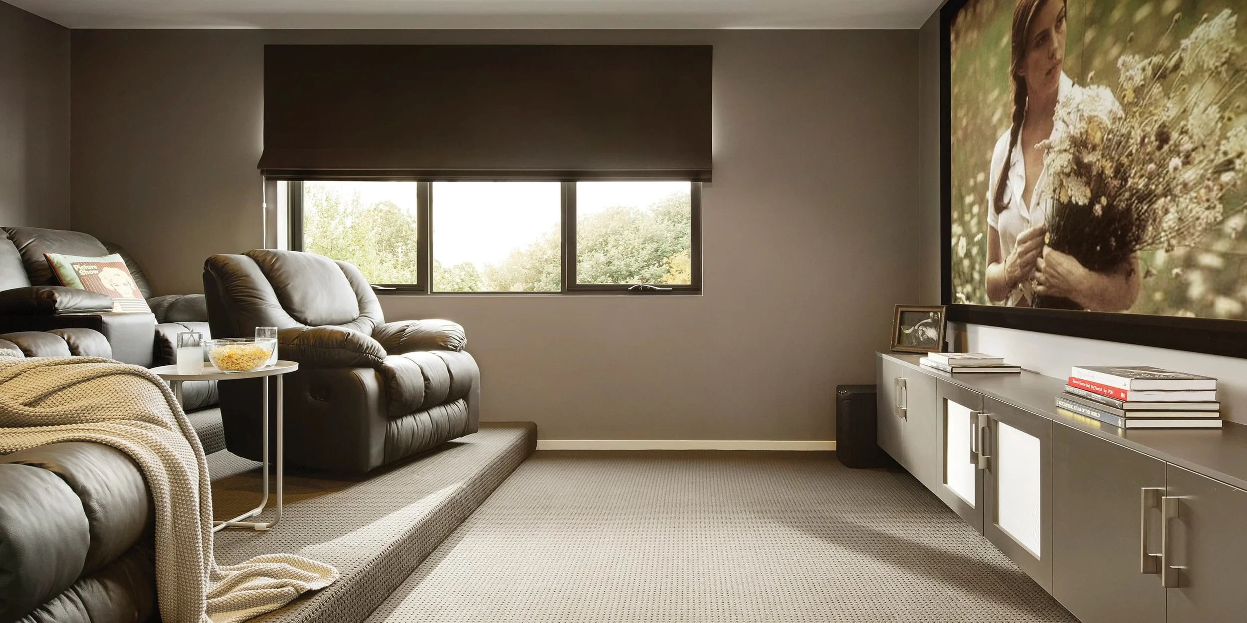 The colour is locked into the fibre before it's woven. Won't fade in the Queensland sun, won't bleach out with cleaning, and holds its finish in the busiest homes.